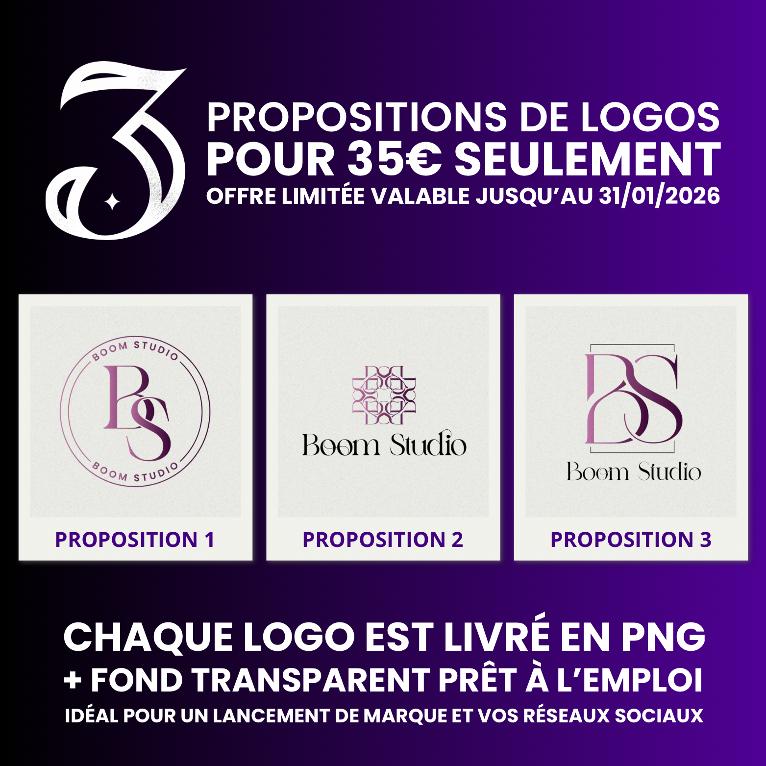 3️⃣ Nous créons vos logos Dès réception de vos réponses, nous travaillons sur votre projet et nous vous préparons 3 propositions de logos personnalisés, pensés pour correspondre au mieux à votre image.